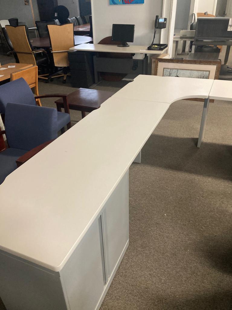 Description Includes 2-pedestals and 1-low storage cabinet. Clean profile and immediately available
