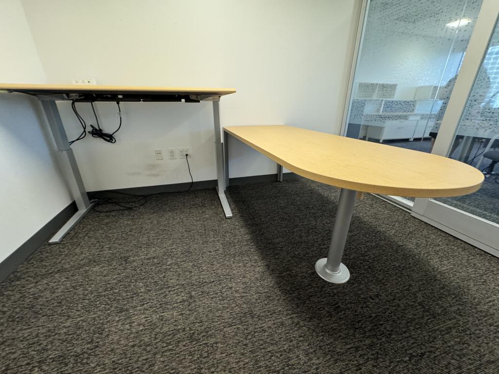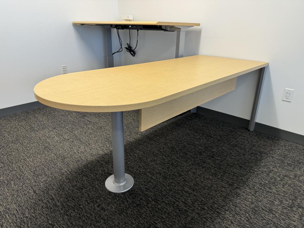 Description We have this Herman Miller 78"x30" Bullet Shape Maple Desk with modesty panel. This modern style desk can be stand alone or complimented with a matching height adjustable base for a return.