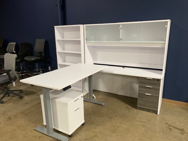 Description 30x60 Sit Stand Desk, 24x72 Credenza w/ Hutch, (1) Box/Box/File Pedestal and 69"H Bookcase