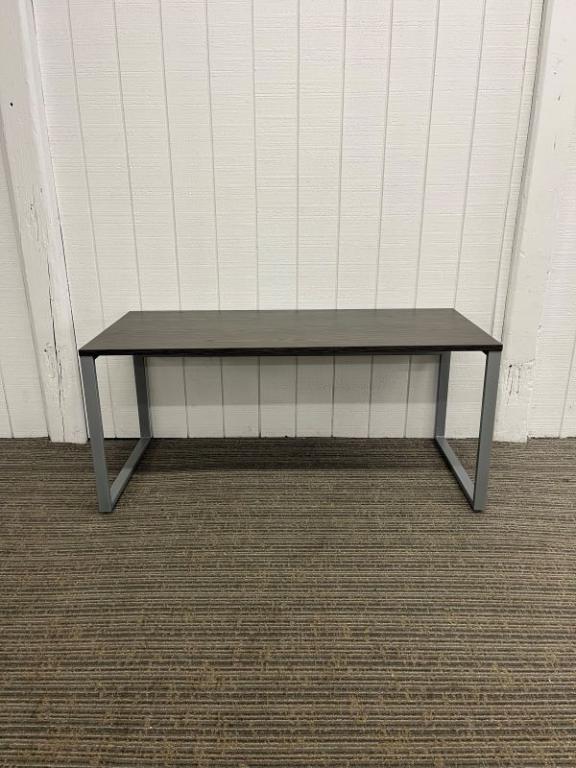 Description IOF Desk supported by O-shaped legs- Tungsten. Low Credenza with 2 drawers (box/file) and 2 shelves (non-adjustable). Laminate surface-top color : Gray Ash. Desk dimensions: 66" W x 30" D Credenza dimensions: 60" W x 20" D