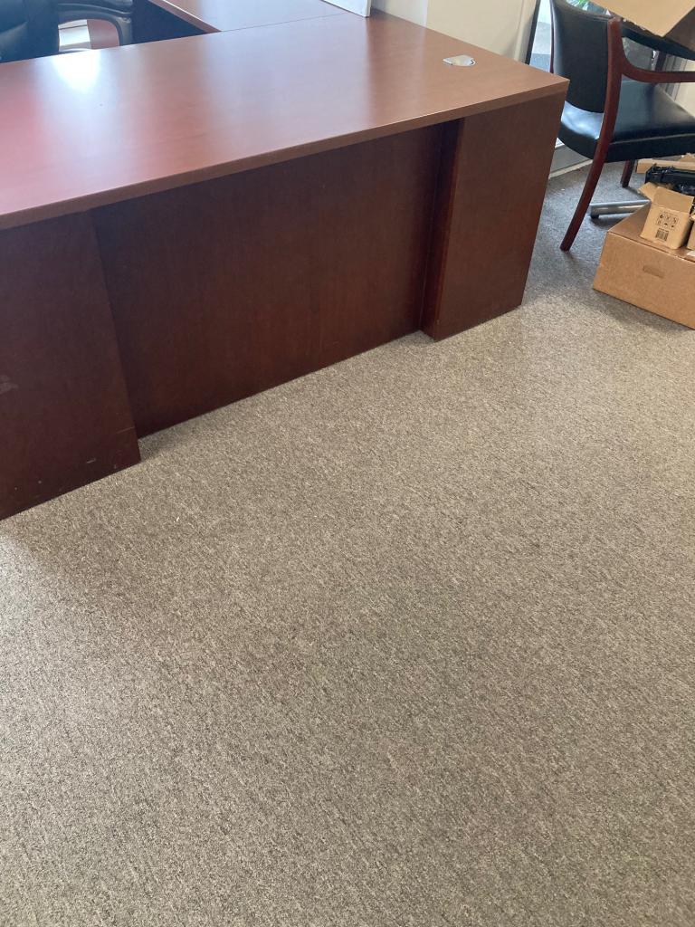 Description Matching set of 10 "L" desks. Three grommet holes.Center drawers is an added treat