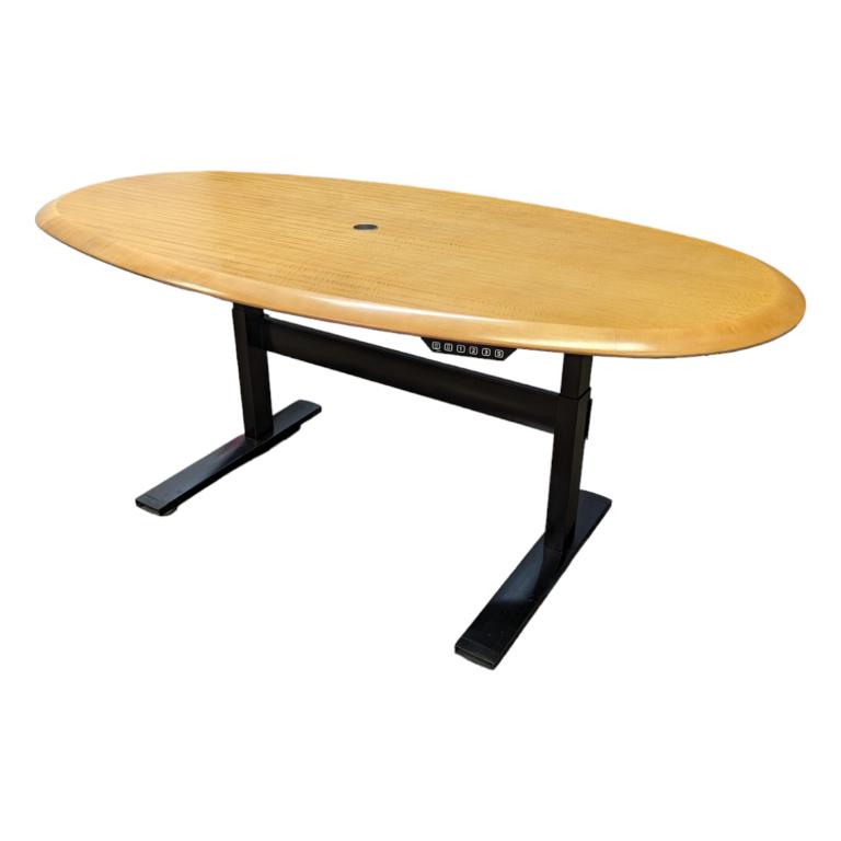 Description 6ft Eagle Oval Maple Top w/ Black Steelcase Sit to Stand Base SKU: 300308
