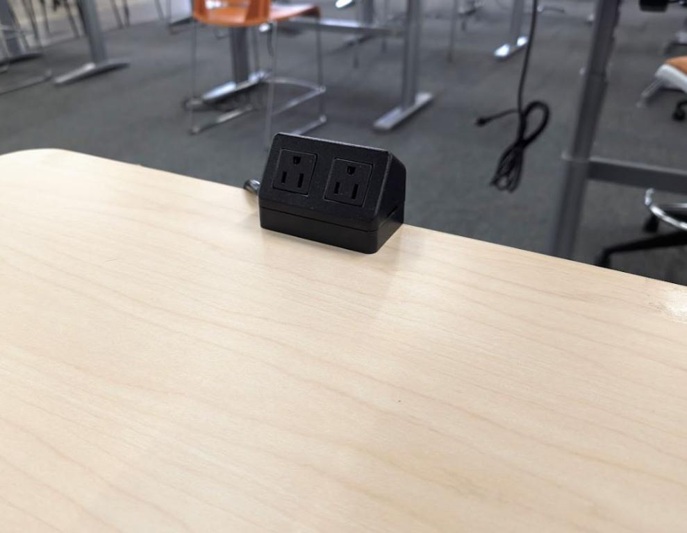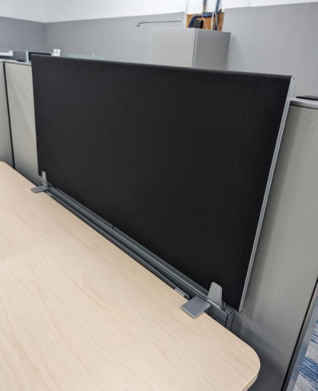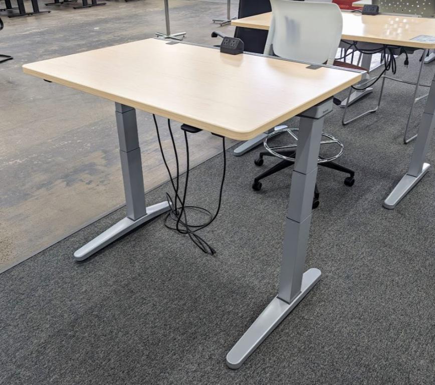 Description Get up & get moving with our Steelcase electric sit-stand desks. They have a light maple laminate top with a platinum base, measuring 48" x 27"W. Each unit comes with a desk mount power box. With the option for the units to come with a dark gray up-mount privacy screen.