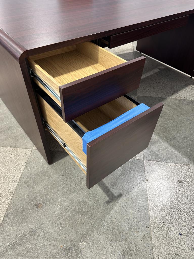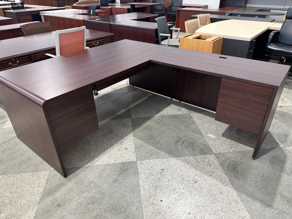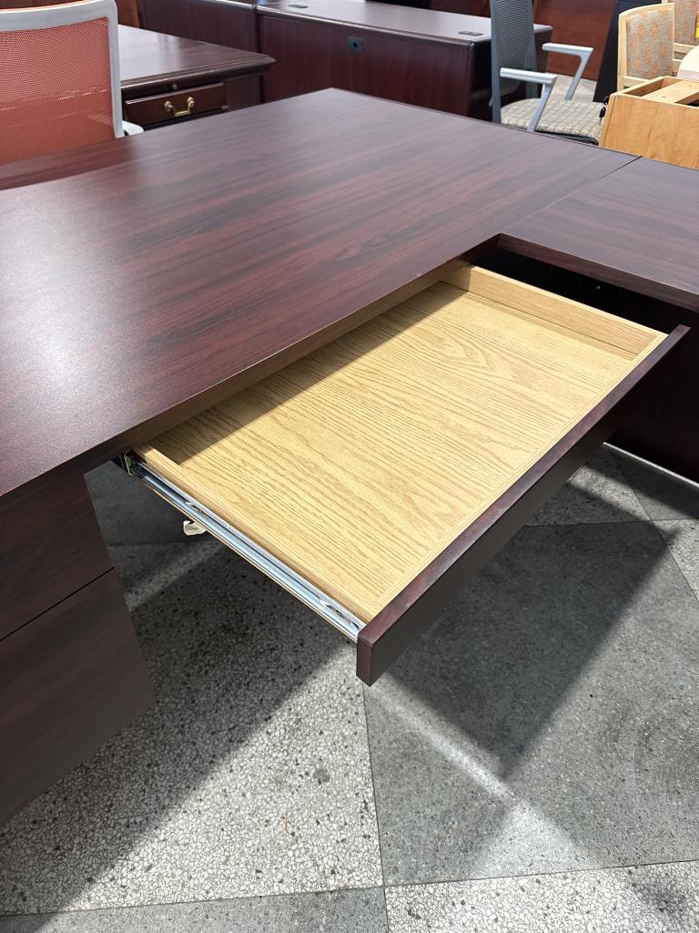 Description L Shape Desk in Mahogany Wood Laminate Finish