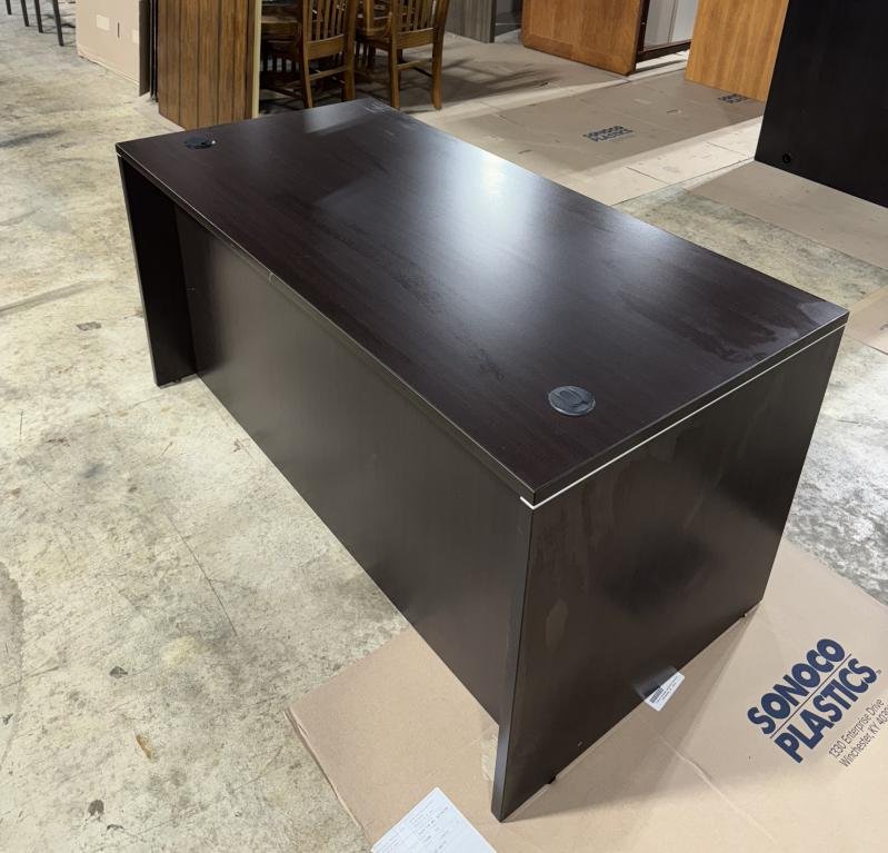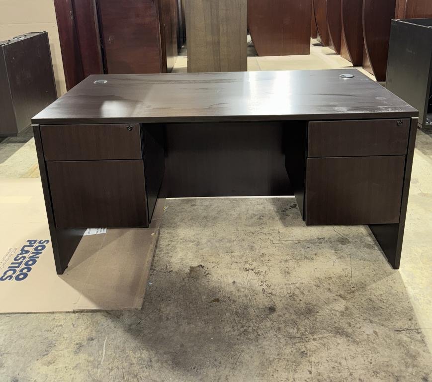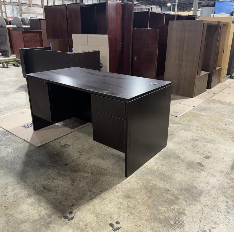 Description The rich espresso laminate finish of this desk exudes durability. Providing a spacious working surface, it includes two grommets for seamless cable management. With built-in box/file units, you'll find ample storage and organization space within this singular desk. *WHS_0724*