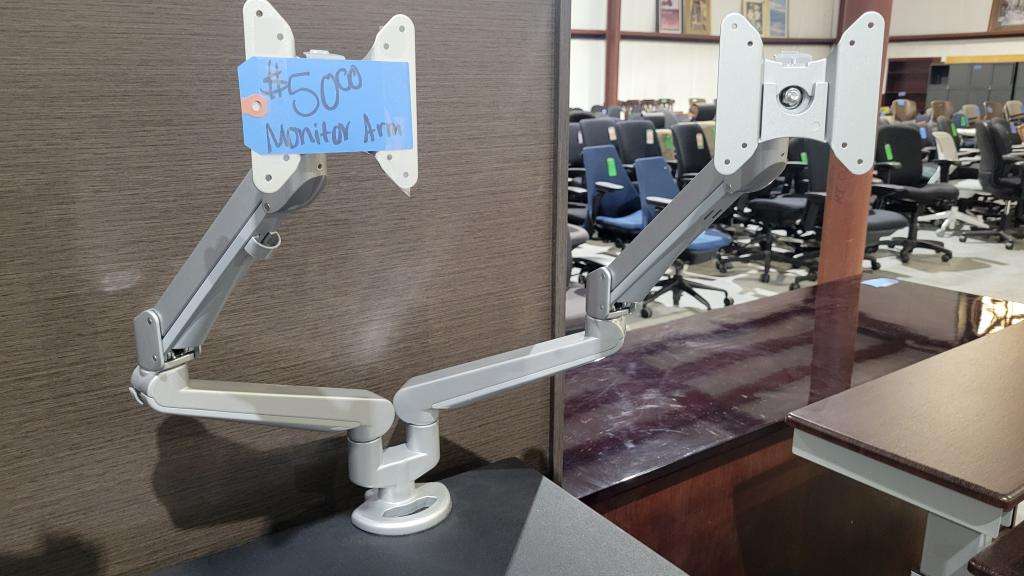 Description Dual Silver Monitor Arm. Adjustable, for two monitors. Great value and ideal for any office or work space!