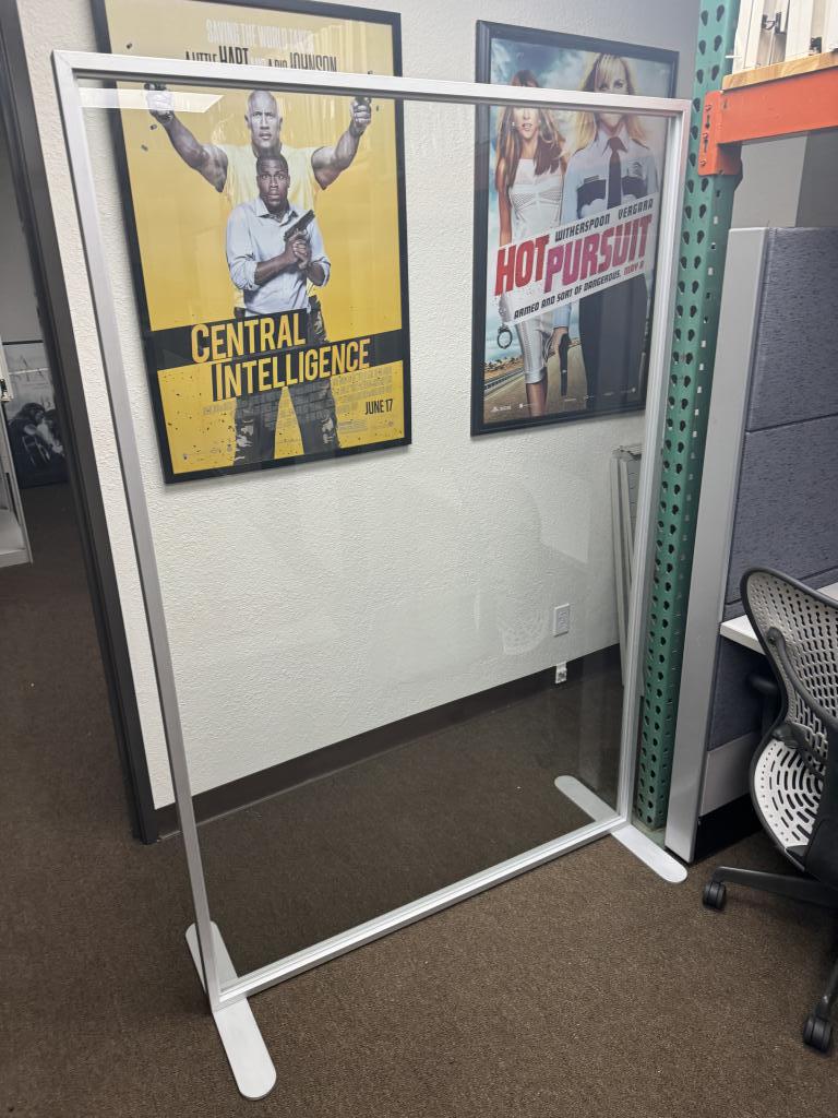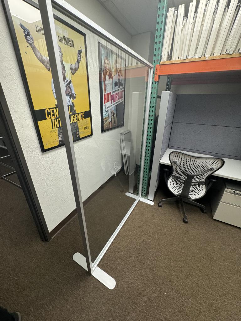 Description We have these 72”x48” glass panel room dividers that are perfect to divide any space, room or office: get an added barrier too separate an area that is off limits while still being able to see and keep an open environment. This is a great modern modular wall solution that comes fully built.