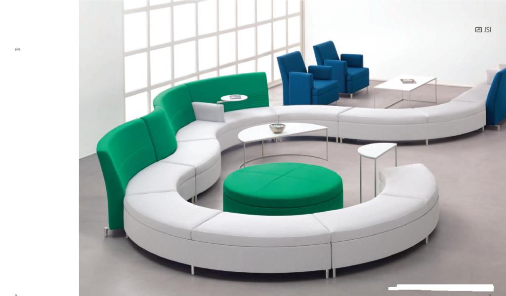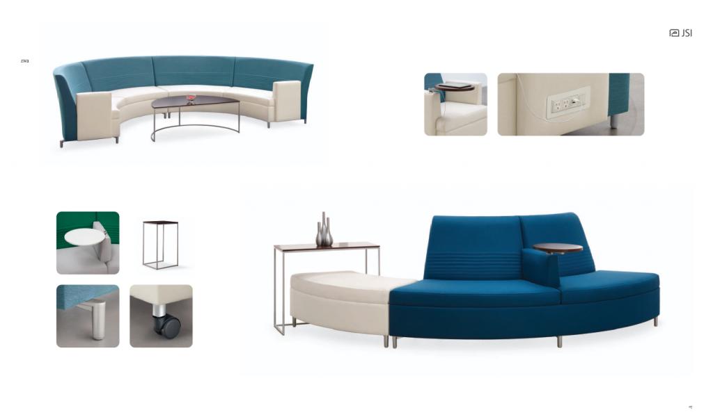 Description Modern Office Lounge Seating by Jofco This line of lounge seating addresses the multifaceted requirements of the modern work environment with open plan and collaborative solutions, modular design, and architectural presence. Upholstered surrounds provide visual and acoustic privacy, while power units and swivel tablets tend to the needs of electronic devices. Adjustable feet allow for leveling throughout modular configurations while casters provide mobility. Available in several configurations, sizes and colors. Call for details.