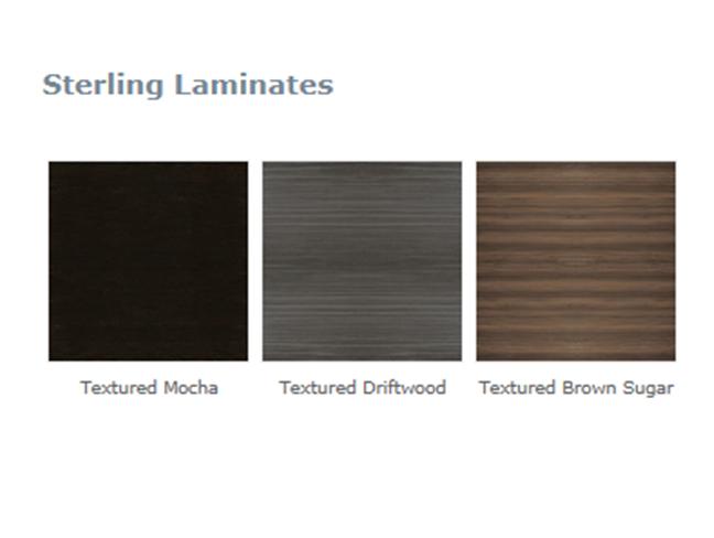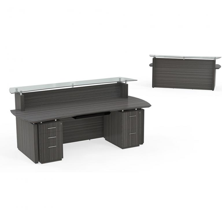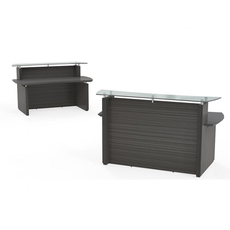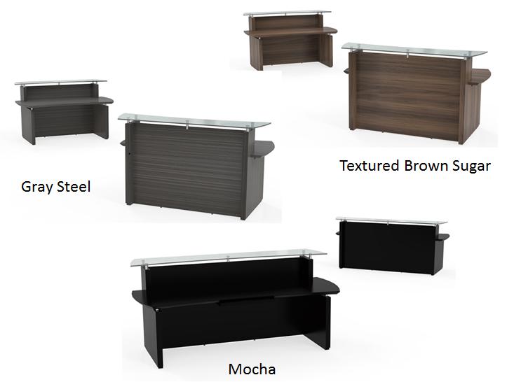 Description Sterling's bold design is crafted with a contemporary decor in mind. The rich finishes showcase the beauty of this laminate line of casegoods. Create a beautiful reception desk or L-desk with as little or as much storage as you need!