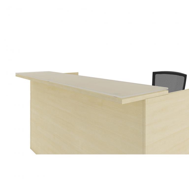 Description Amber Series provides durable, thermofused laminate pieces for an affordable price. With interchangeable parts, you can create a left or right handed reception L-desk with as little or as much storage as you need. Select to add the glass transaction counter for a polished look. Available in 5 laminate finish options. Call or email for you quote on a great, affordable Amber reception desk today!