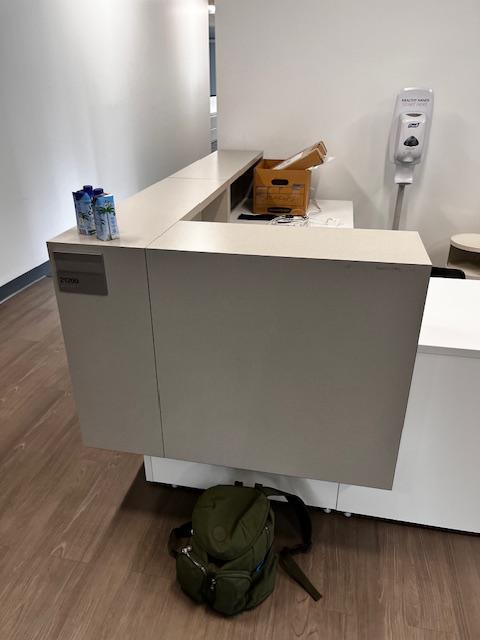 Description Laminate tops Laminate transaction counters Two drawers underneath. 2- pieces (desk and return.) ADA left side.