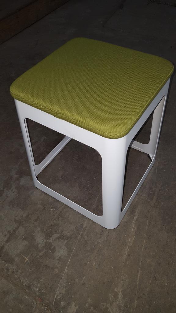 Description High Tower Stool- green fabric white frame stackable 14" square x 18"h