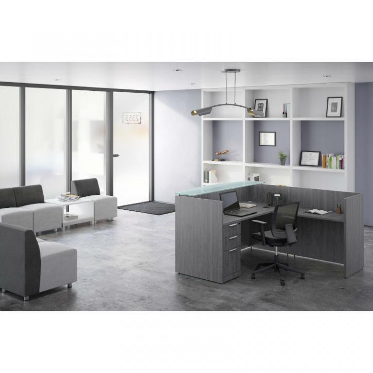 Description Available in a wide range of components and sizes, this laminate reception desk was built with detail in design, quality of hardware, and use of premium grade laminate work surfaces in mind which will ensure your business years of trouble free use. Available in your choice of 6 laminate finishes. Optional glass transaction counter available as well.