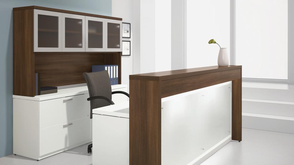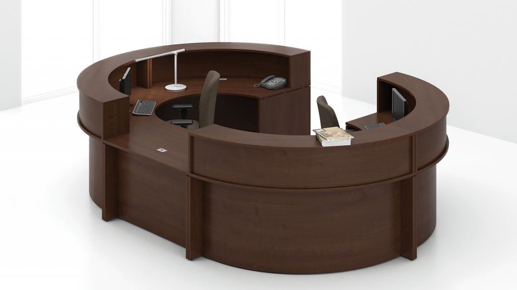 Description Every business needs a reception desk that will impress its customers. This new line of Group Lacasse reception desks are available in many different styles, colors and finishes. From modern to traditional, from wood veneer to laminate, we offer a reception desk that fits not only your business, but your office space as well. Call us to price out the desk for you!
