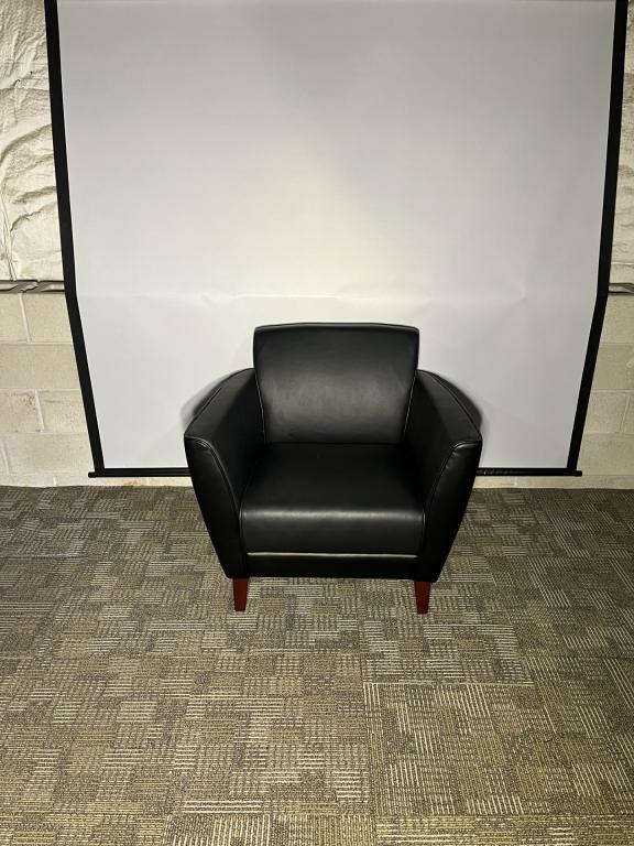 Description Compel Levengo black leather club chair with dark wooden legs. Dimensions: 24" wide x 20" deep x 34" tall, seat height is 17" tall.