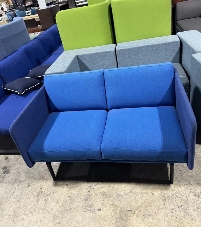 Description Enhance your lounge or reception area with our striking blue two-toned fabric lounge loveseat. Crafted with sleek black legs, accented with regal blue frame, and adorned with vibrant blue cushions, it's the epitome of modern elegance.*WHS_0524*