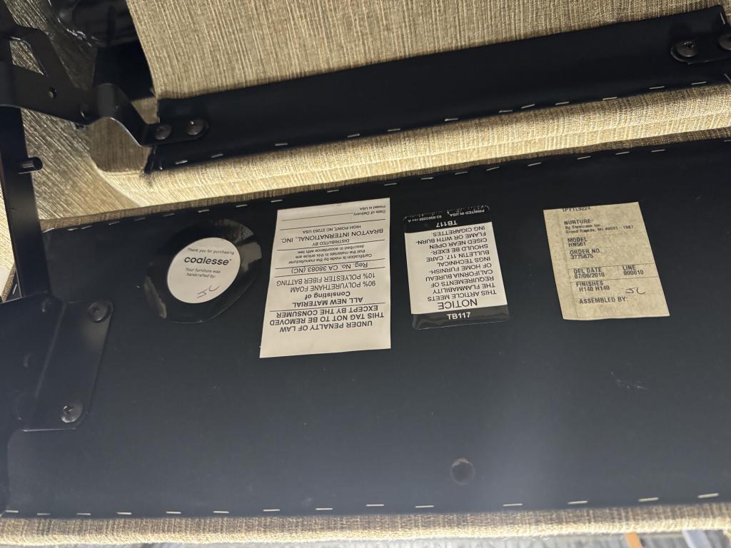 Available in a vinyl grey and patterned tan fabric.