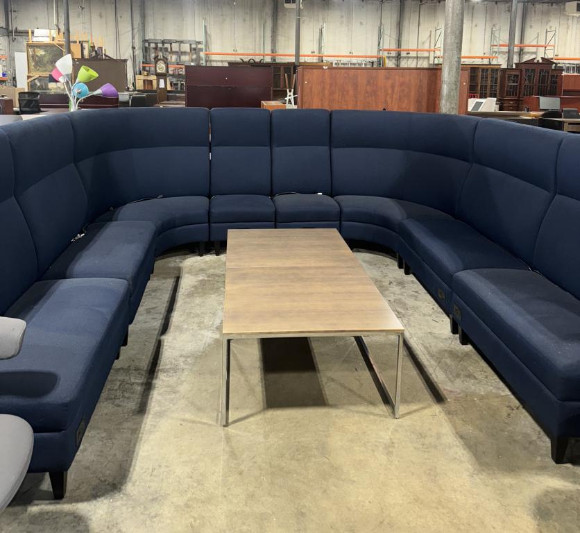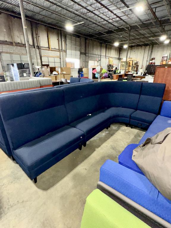 Description Introducing our navy blue four-piece sectional sofa, ideal for lounge areas. Offering abundant seating, it's versatile and easy to maneuver to suit any space.It comes with built-in outlets for added convenience.*WHS_0524*