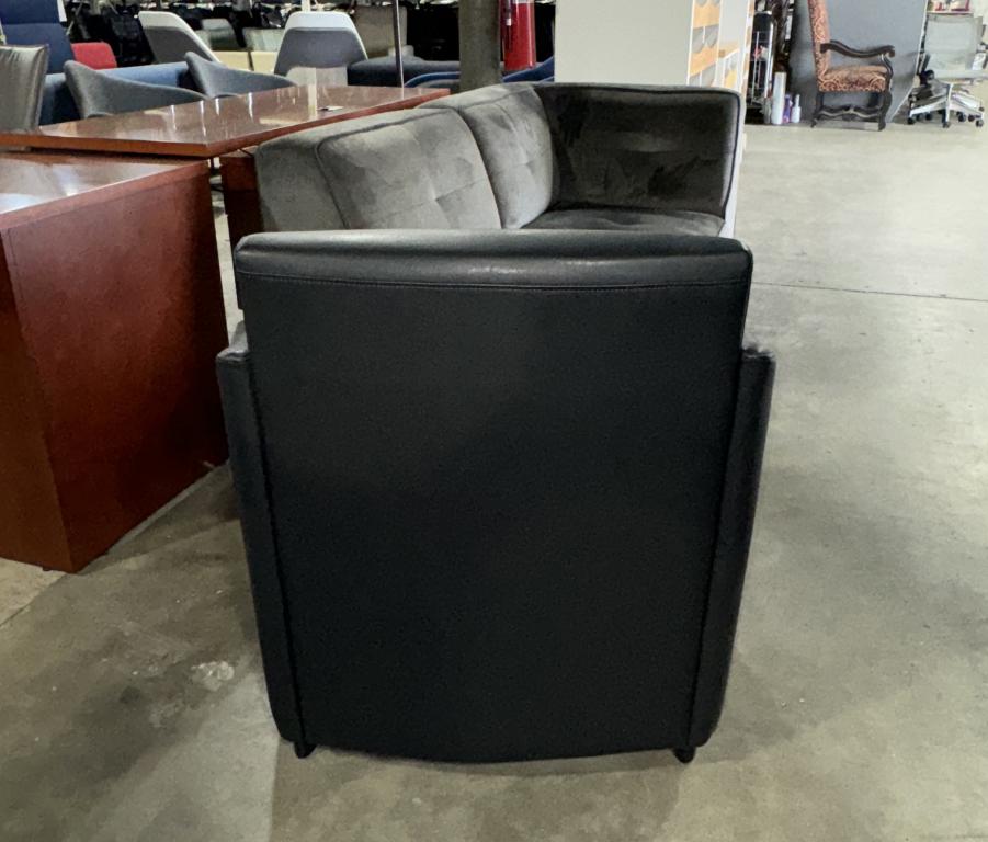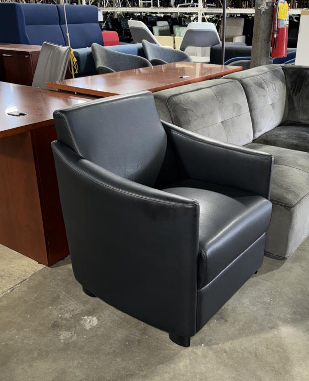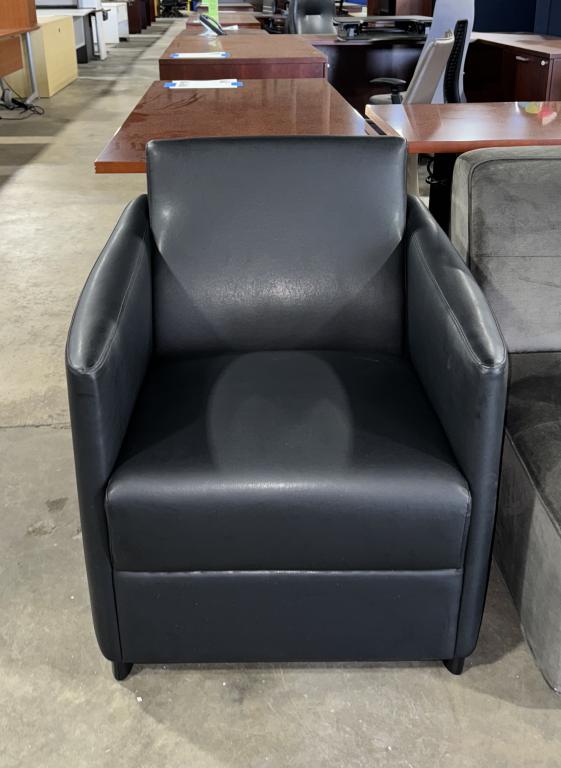 Description The new Cherryman lounge chair, a modern club chair that strikes the perfect balance between traditional and contemporary design. Upholstered in black synthetic leather textile, it's perfect for lounge areas. Comfortable padding and cushions throughout ensure a cozy experience. With its minimalistic lines and solid finishes, it seamlessly blends into any environment.*WHS_0524*