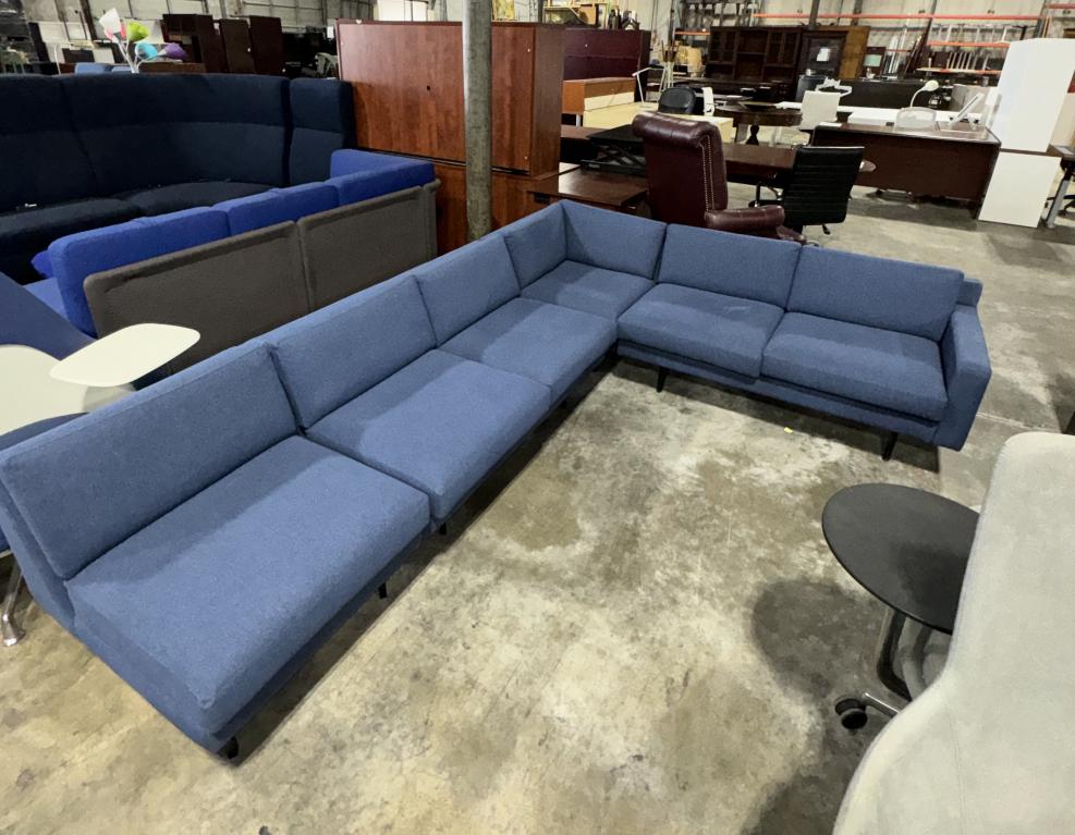 Description The OFS Sofa is upholstered in chic denim blue fabric. Its low-profile design enhances comfort while adding a touch of modern elegance. Featuring four customizable sections to perfectly fit your space, this versatile sofa provides ample seating and stylish sophistication to any lounge area.*WHS_0524*