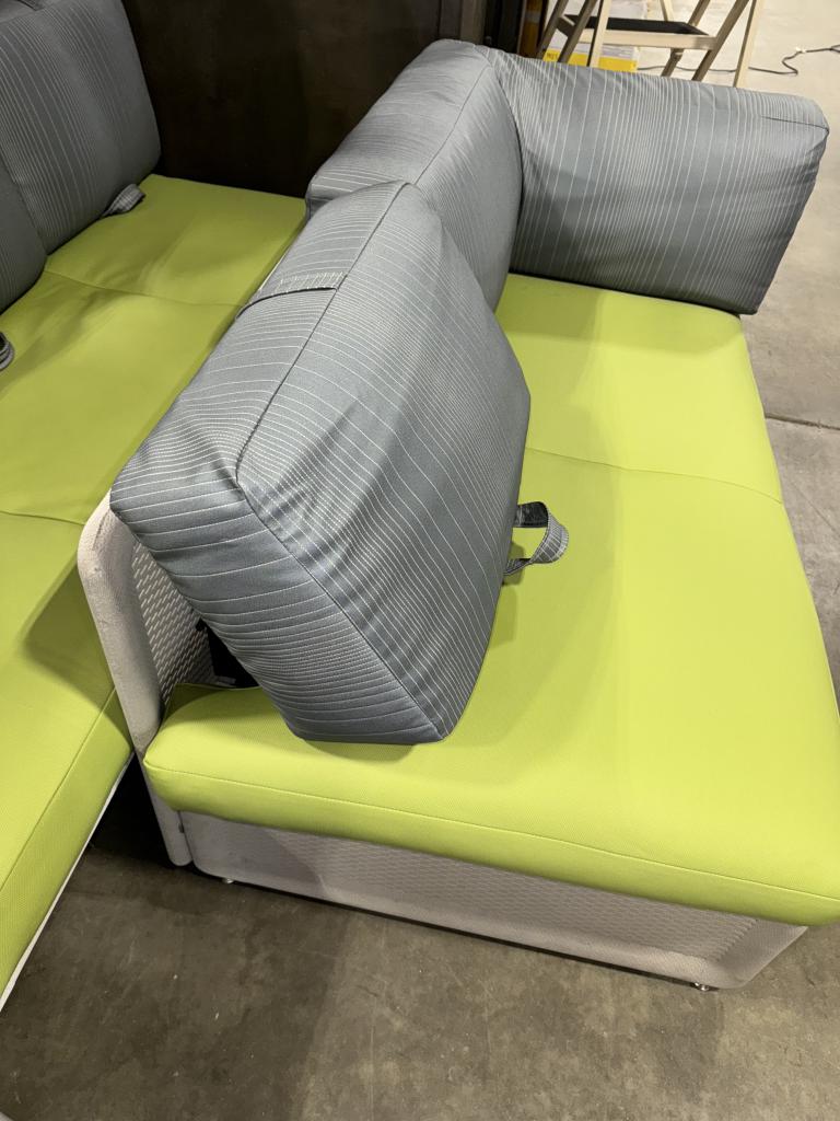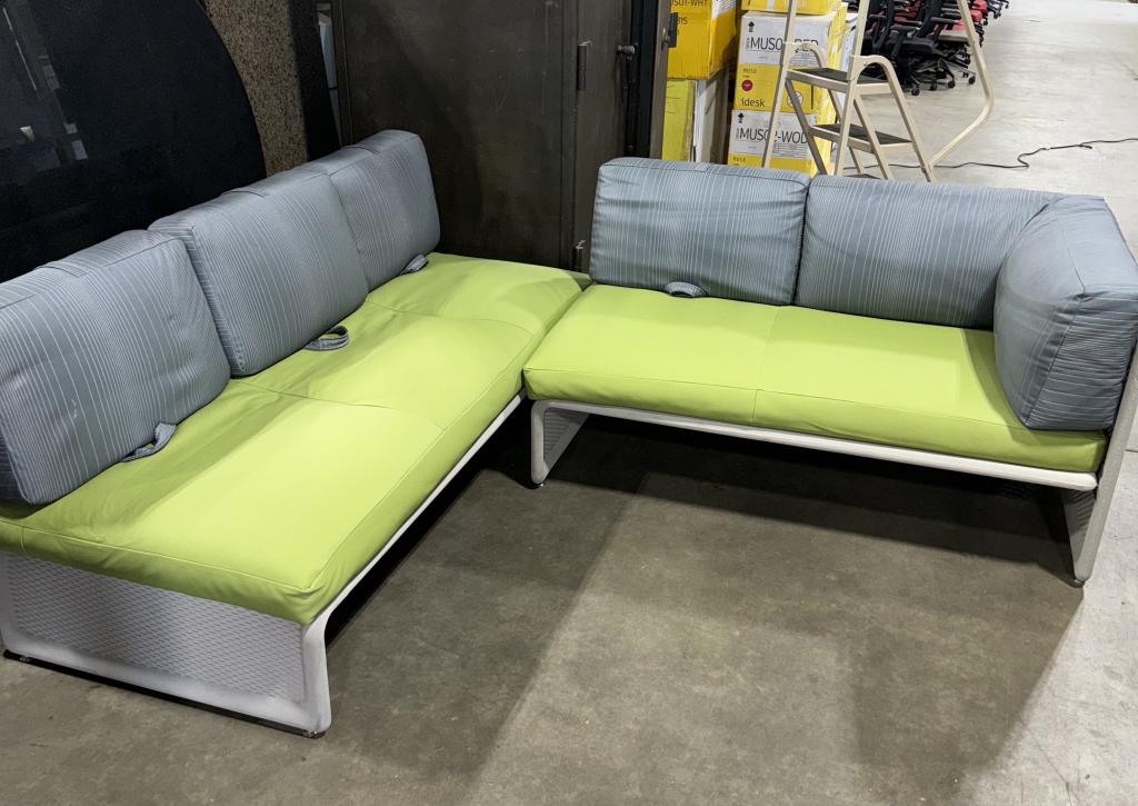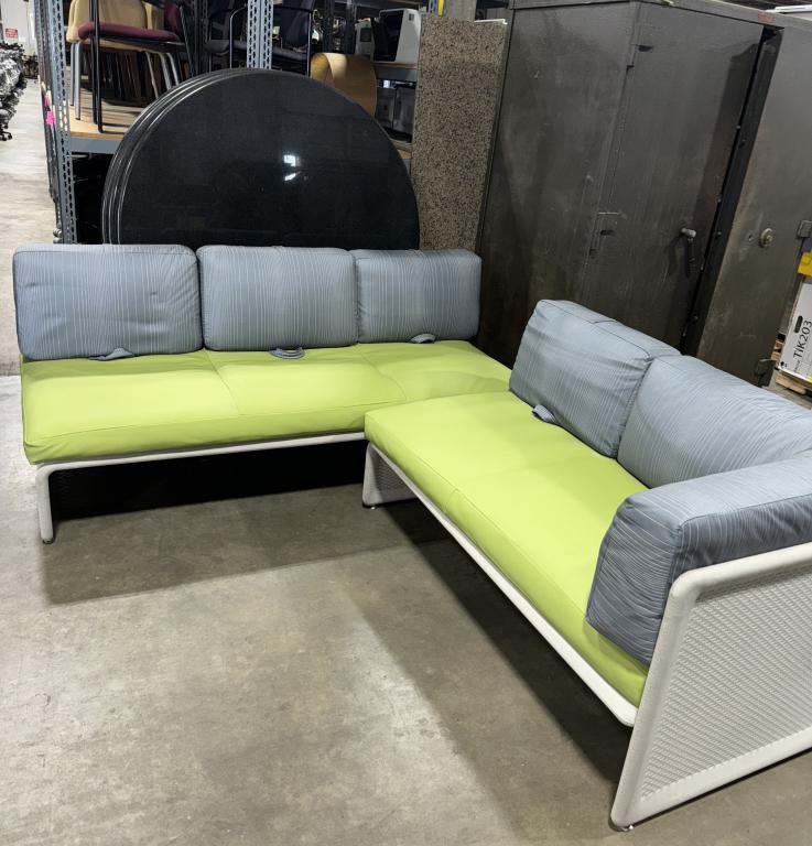 Description The Coalesse Lagunitas Lounge Sectional offers a stylish and comfortable seating solution for any space. Featuring vibrant green and grey cushions, this sectional combines modern design with exceptional comfort. Its unique articulating back cushion allows for toggling between lean-forward and lean-back postures, providing personalized comfort. The modular configuration allows for flexible arrangement, making it perfect for lounges, waiting areas, and collaborative workspaces. Enjoy both relaxation and versatility with this chic lounge sectional.*WHS_0724*