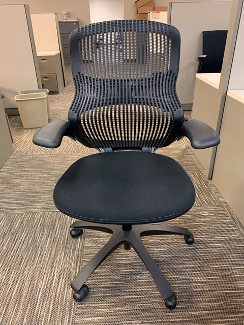 Description We have Knoll Generation Chairs available. They have an black upholstered seat with black plastic flex back. Very comfortable, some do need new arm pads, but all are in good working order.
