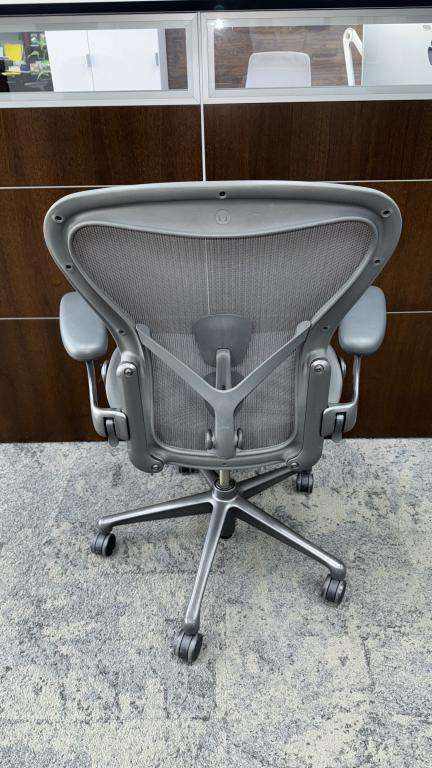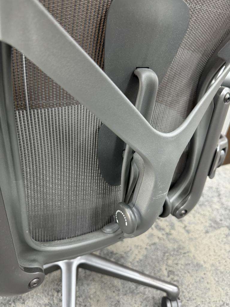 Description The Herman Miller Aeron PostureFit SL Task Chair in graphite color is a modern and ergonomic seating solution. Engineered with PostureFit SL back support, this chair promotes superior spinal alignment, reducing strain and enhancing comfort during long hours of sitting. The fully adjustable arms, tilt limiter, and seat angle adjustment allow for a personalized seating experience, ensuring that you remain comfortable and supported throughout the day. This Size B chair, with its sleek design and advanced ergonomic features, is perfect for any home or office setting.*WHS_0924*