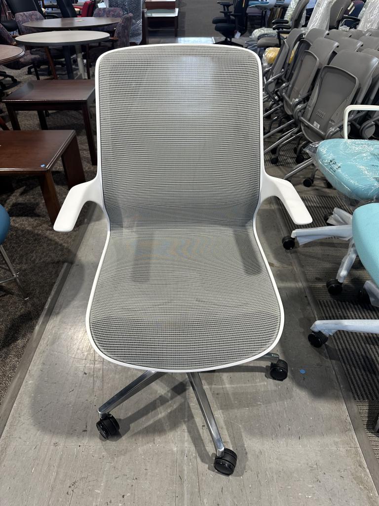 Description 9-5 Seating Office Chair ( Omnia 2860) in Gray Mesh W/ White Arms Aluminum Base Goes Up/ Down Arms NonAdjustable 3 Matching Available Like New Condition, Never Used Chairs ( Still Has Packing Paper On Them)