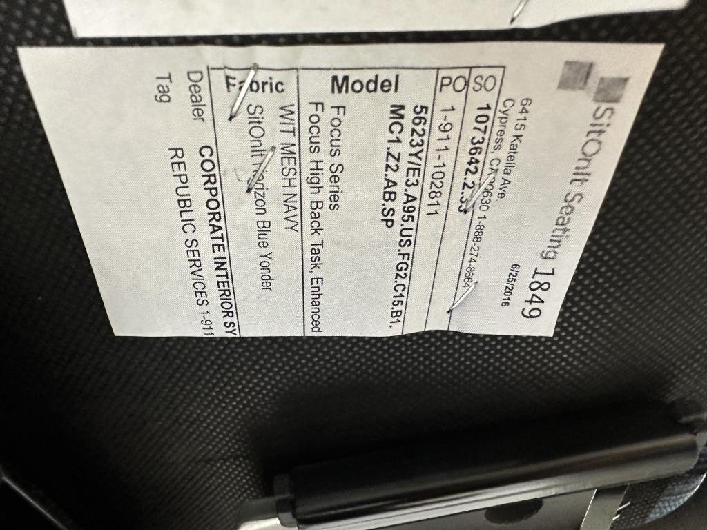 Description Sit- On - It Focus High Back Office Chair w/Navy Mesh Back and Horizon Blue Yonder Seat Used Chair , Comes w normal wear and tear but in overall good working condition 200 Available Goes Up/Down Seat Adjustable Front To Back Tilt Control Tension Control Arms 4 Way Adjustable and Adjustable Further Apart 2016 Range Manufactoring Year
