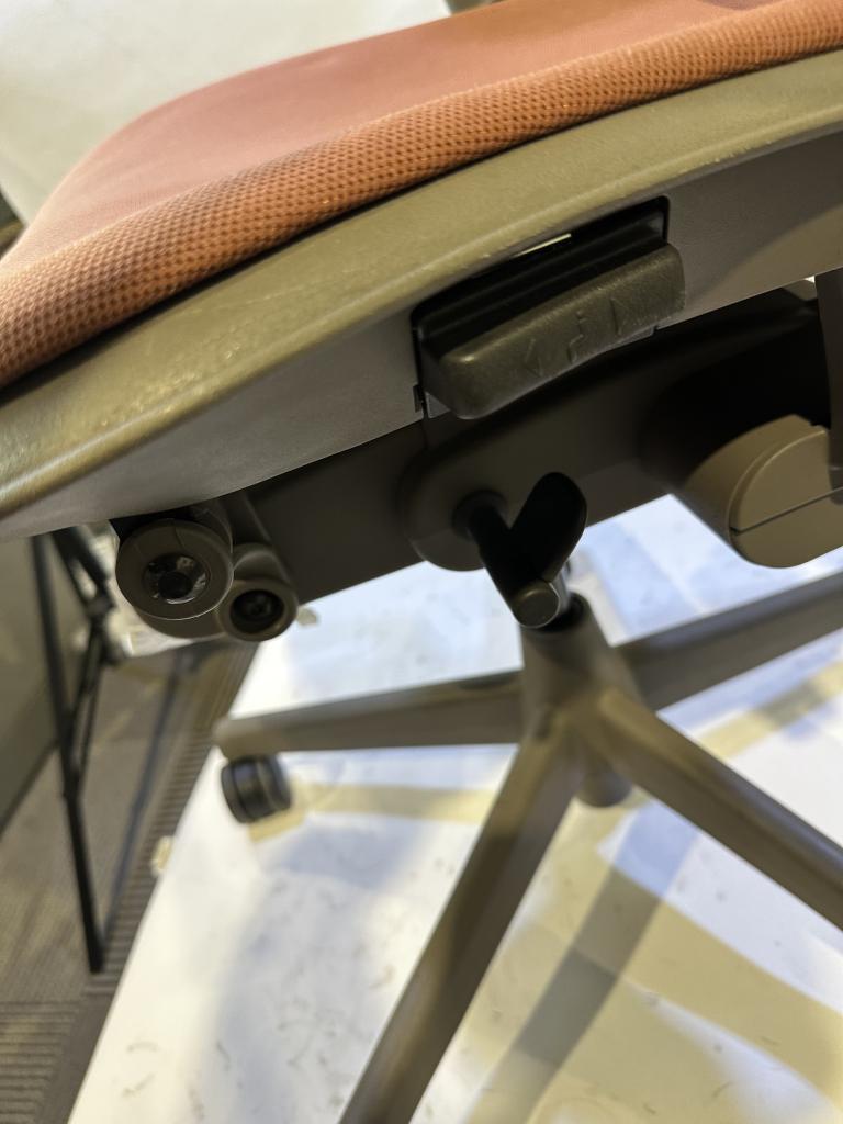 Description Herman Miller Celle Office Chair w/ Orange Fabric Seat 15 Available Chair Goes Up and Down Tension Control On Seat Tilt Control Arms Adjustable Up/ Down and Side To Side Built in Adjustable Back Support Seat Adjustable Front To Back 2009 - Manufactoring Year Range Used Chair , Comes w normal wear and tear but in overall good working condition