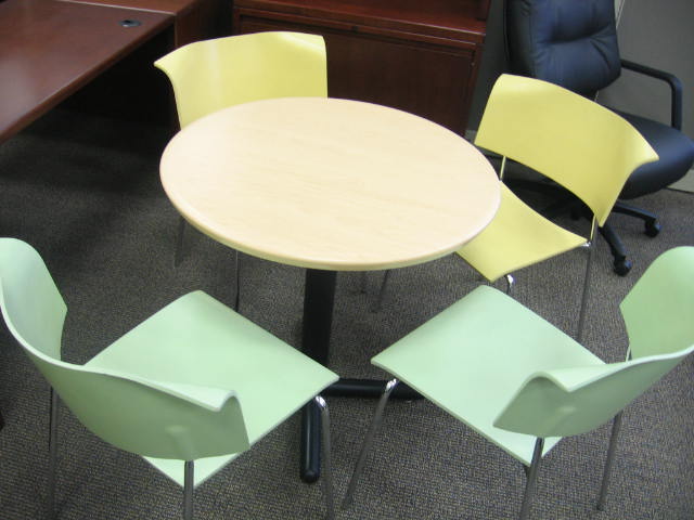 Description We have a wide variety of tables and chairs available for your break room and cafeteria. Assorted styles and colors.