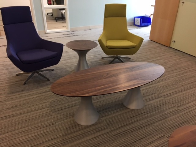 Description Give your guests the wow factor when they walk into your reception area. We have a large selection of contemporary seating with matching side tables for the office or for the home. Pictured is a recent install for a client where we designed several lounge/reception areas. Please call us and let us design your space!