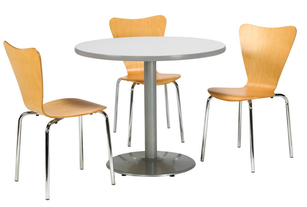Description This KFI Café Chair features 18 gauge round steel frame, a bent plywood shell and polyurethane glides. The wood stained seat is available in Natural or Espresso. This chair is also stackable to 5 high. Quantity discounts are available