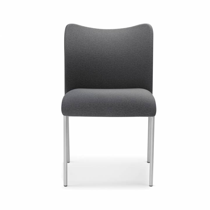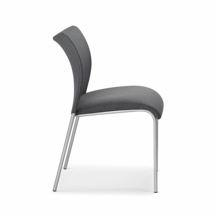 Description The Inertia Upholstered side chair is available in countless fabrics and multiple frame finishes. These side chairs are available with or without arms and can be ordered with casters. This side chair can stack five high on the floor, but only two high with casters. These chairs can be stacked ten high on a optional chair dolly available for purchase, along with ganging brackets.