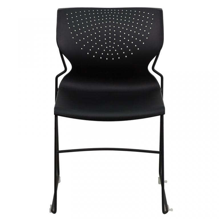 Description The Hercules black stack chair with black frame is great for educational, healthcare, and office environments. The curved back provides lumbar support without sacrificing breathability. Quantity discounts are available.