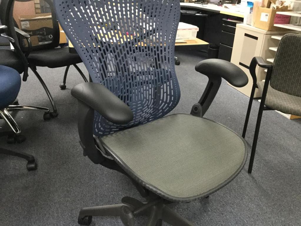 Description We currently have Mint Condition Herman Miller Mirra chairs available, see pictures. These are out of box never used surplus chairs we found in our customer's storage trailers. We also have Mirra Versions 2's. Pictures coming soon.