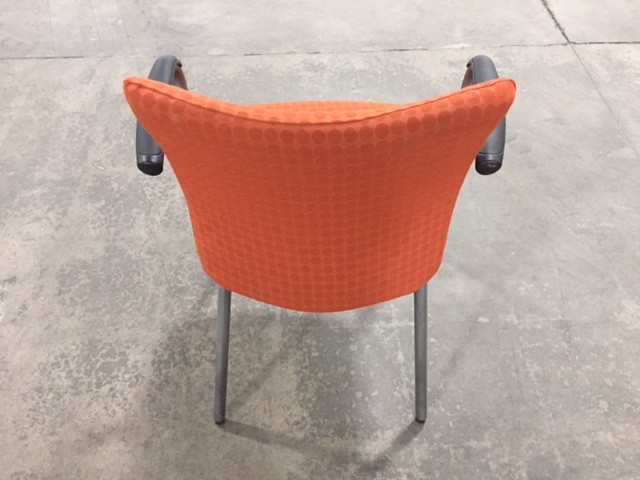 Description Allsteel Sum guest chair. Orange fabric with silver base. Loop arm.