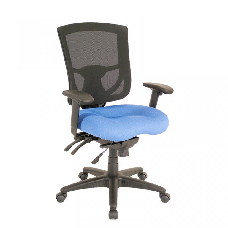 Description High-Back Multi-Function Task Chair. This chair has a polished aluminum base and is available in 6 colors. Features on this chair are: Tilt Tension Adjustment, Seat Height Adjustment, Seat and Back Angle Adjustment, Multi-Position Tilt Lock, Forward Seat Tilt, Seat Slider and Height/Width Adjustable Arms. Optional headrest is available.