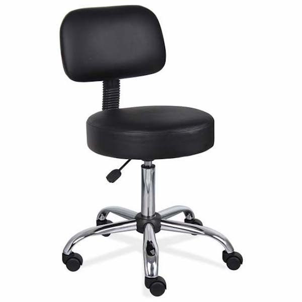 The armless design aids in quickly getting up and down, without having to worry about getting snagged. Built on a extremely sturdy polished chrome base, this easy to clean vinyl seat pad and back support is just what the doctor ordered! Users can easily roll around the work area, while keeping your body supported for those long hours at work.