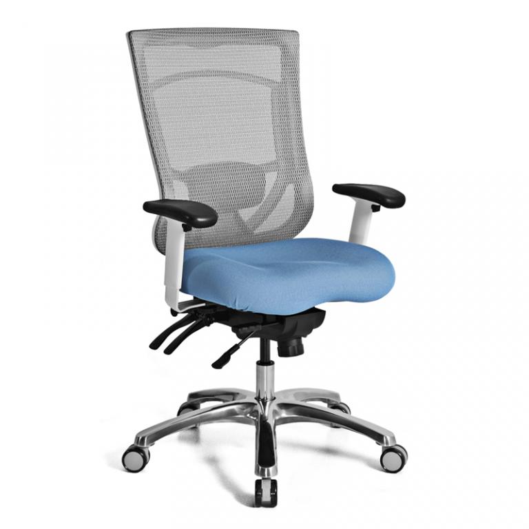 Description Office desk chairs with a fabric seat and mesh back. Featuring an optional headrest, tilt tension adjustment, seat height adjustment, seat and back angle adjustment, multi-position tilt lock, seat slider and adjustable arms.