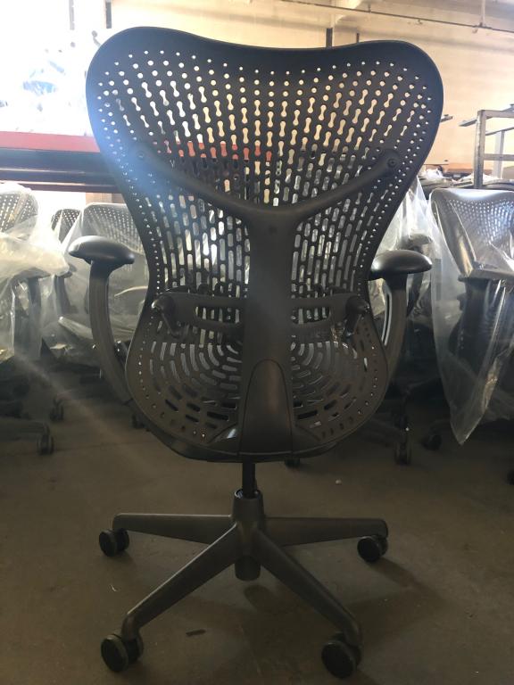 Description The Herman Miller Conference chair is a multi-function task chair with complete adjust ability to tailor the chair to your specifications. These task chairs are a sleek seating option for any environment and are in-stock here at EOE. Our Mirra 1's are as-is and in like new condition, offering a great chair at an unbeatable price point. Stop in today to pick yours up!