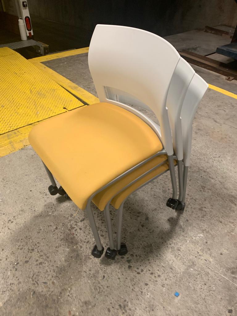 Description Citron Yellow. Artic White Back Stacks 5 high. By Steelcase Manu. (Move series).