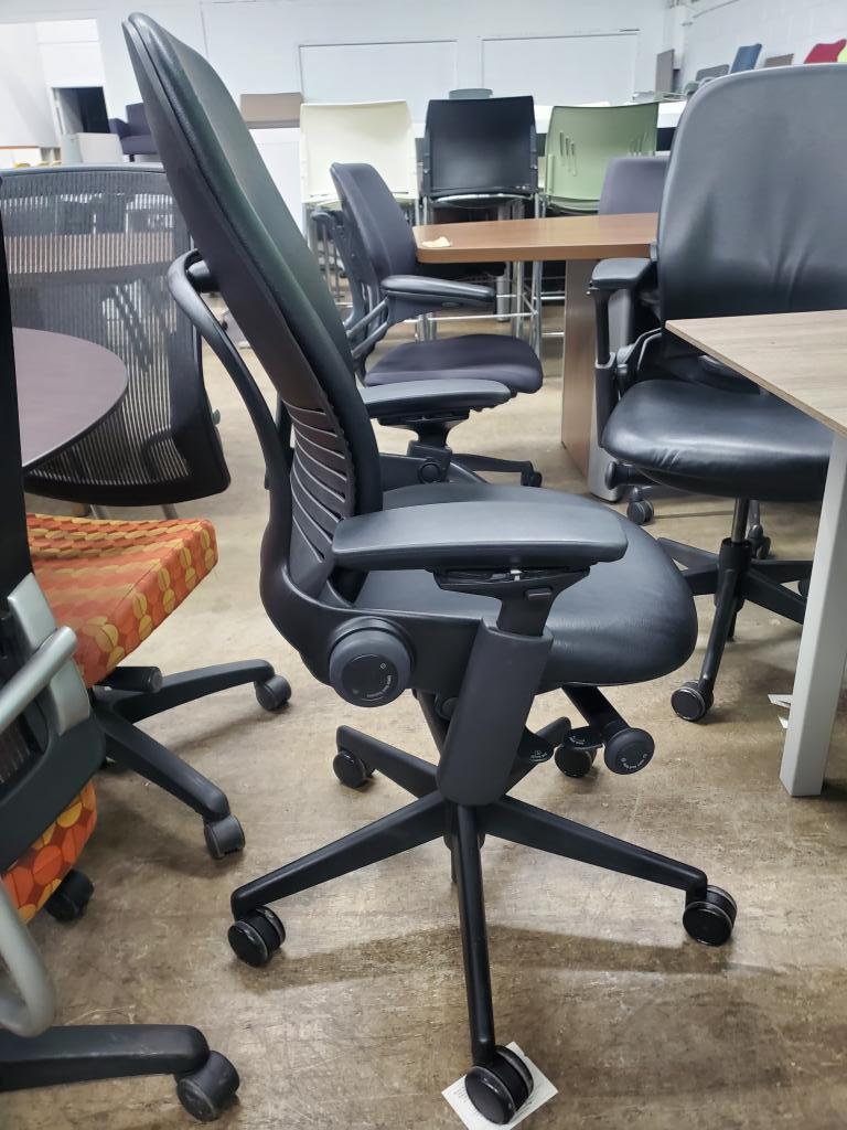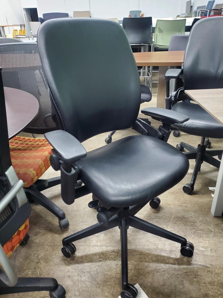Description Steelcase Leap V2 chairs in black breathable vinyl & V1 In Newly Re-upholstered black vinyl!! Bleach cleanable!! Fully ergonomic, fully adjustable, great condition! They won't last long! Email or call for your quote today!!