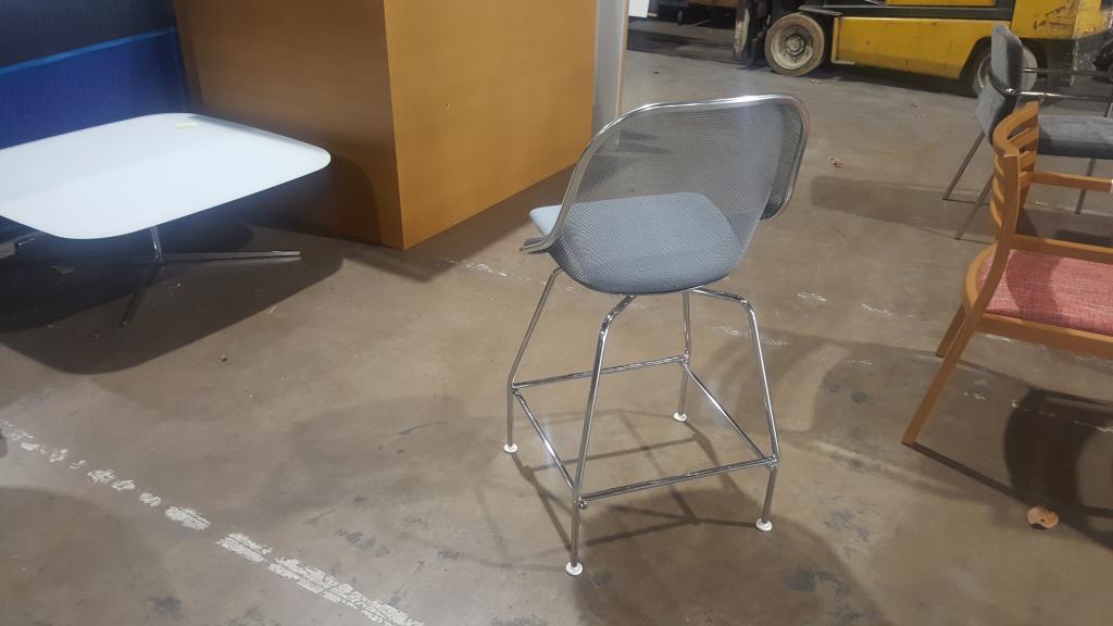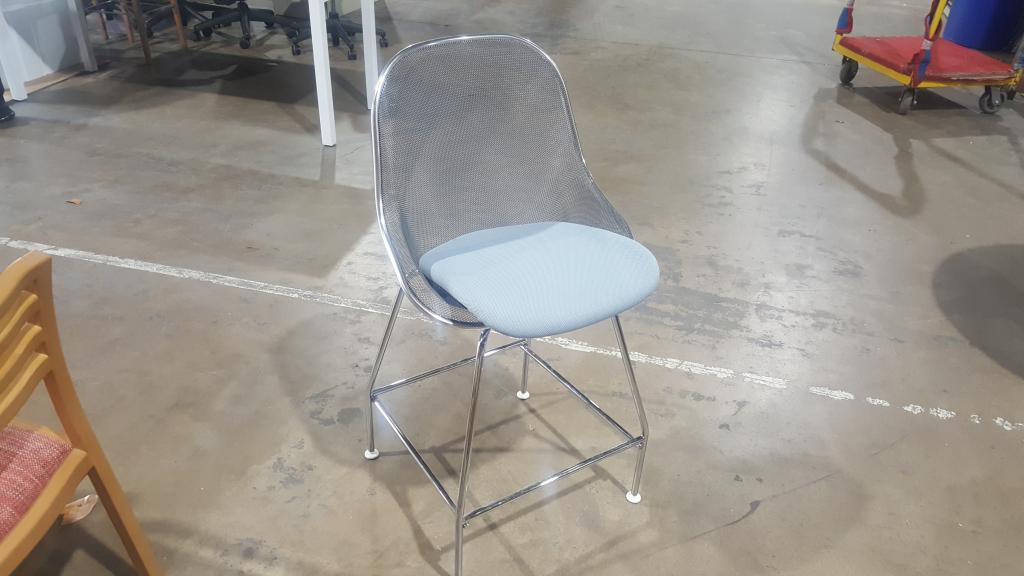 Description Beautiful designed chairs from Italy, metal mesh back with gray fabric seat. New these are $3000+.
