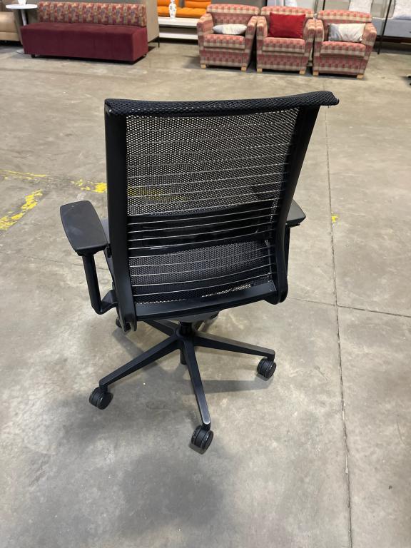 Description New lot of beautiful Steelcase Think chairs just arrived! We have over 100 of these gorgeous ergonomic chairs but they won't last long! Black mesh back w/lumbar, multi-adjustable arms, synchro-tilt mechanism, waterfall seat, seat slider & more!