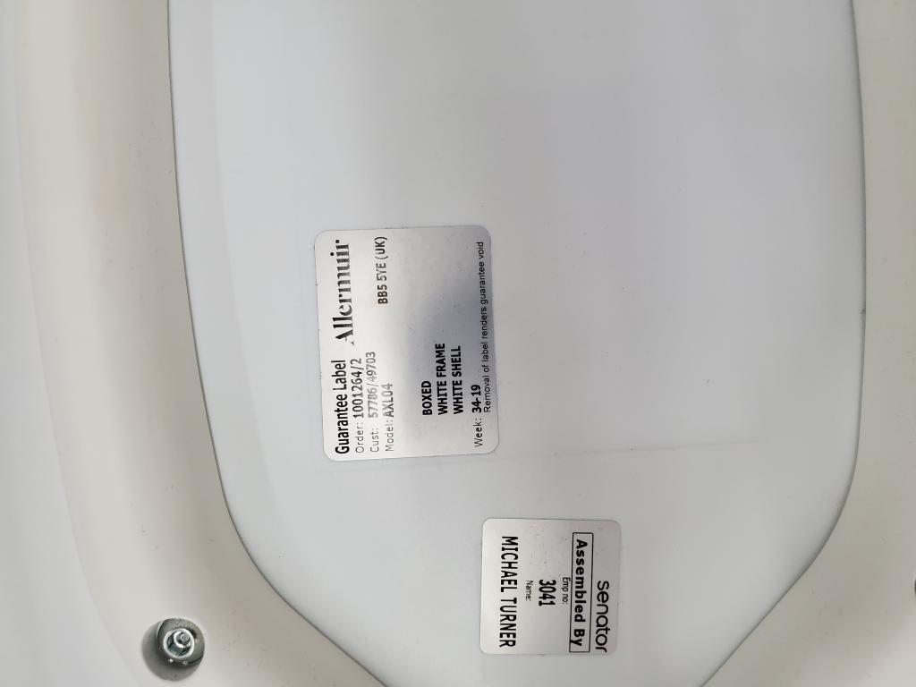 Description Allermuir Stool white stool with footring 28-1/2" height 15.5" deep x 15.5 wide