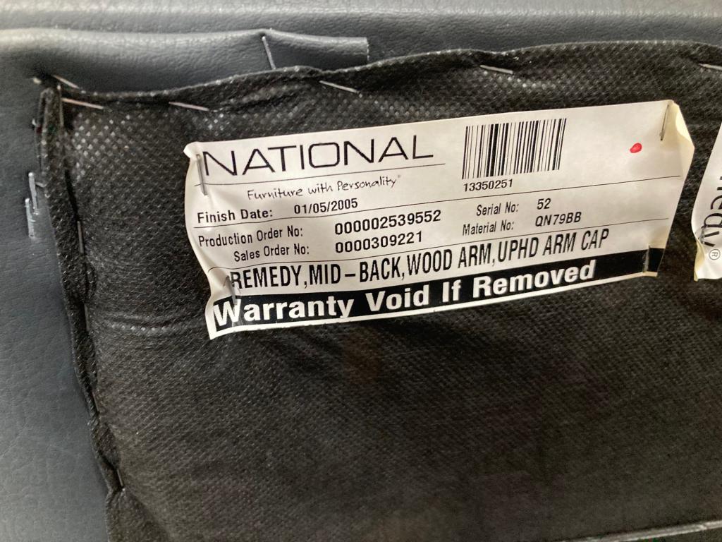 Description Set of 2 "National" conference chairs. Wood arm with inlaid cushion. Great condition