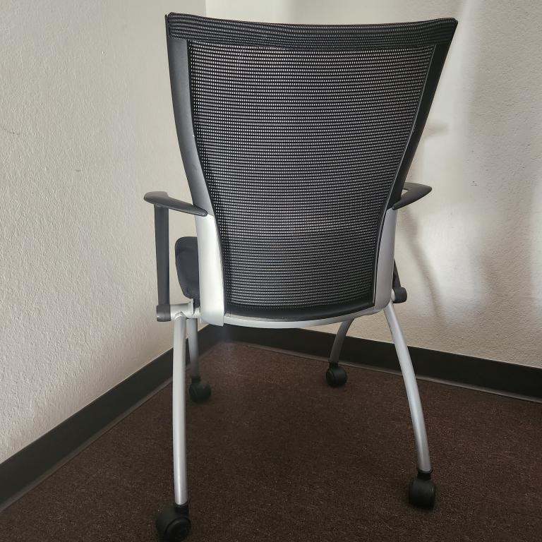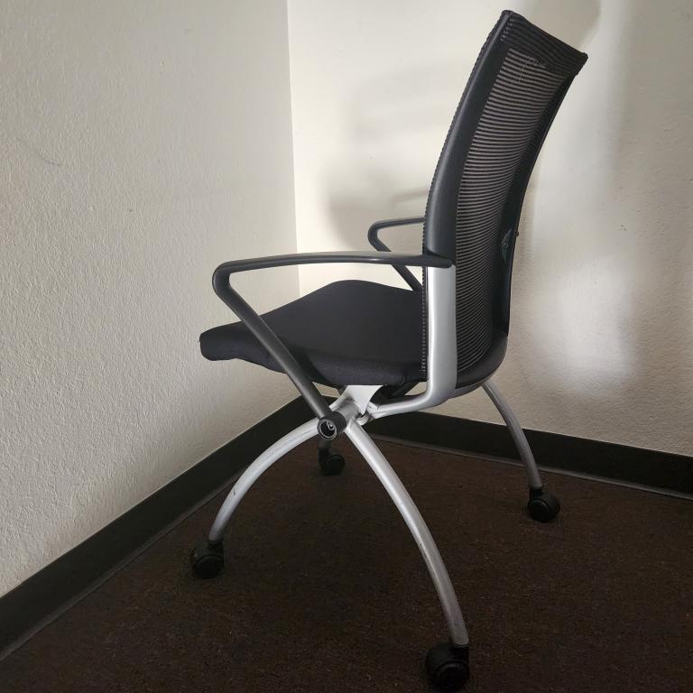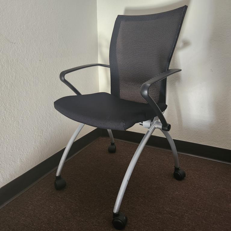 Description Condition: Gently Pre Owned Brand: Haworth Model: X99 Features: Foldable, Stacking, Mesh Back Fabric Seat, Finishes: Charcoal, Steel Frame, Mesh Back