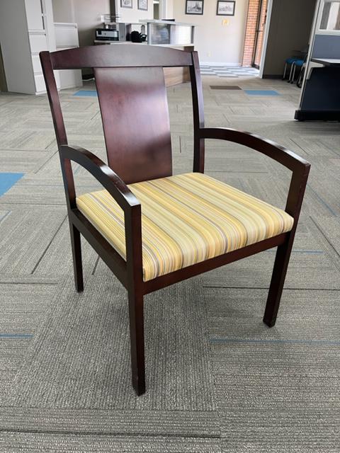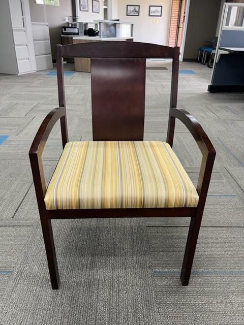 Description Kimball wood frame guest chairs available in a mahogany frame and a pattern seat fabric
