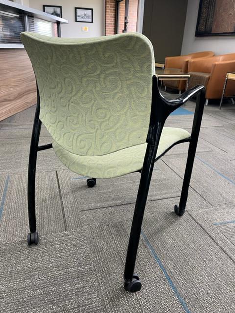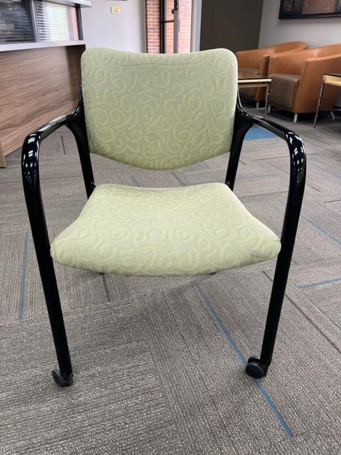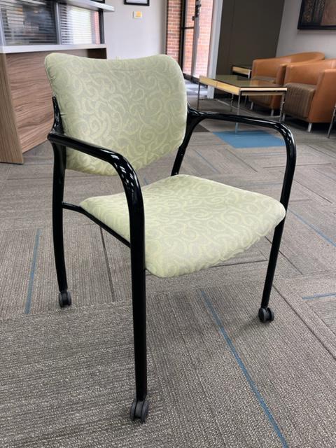 Description Herman Miller guest seating available with a green pattern fabric and a black frame. 1 with casters and 2 without casters. Must see, excellent condition!